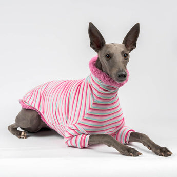 This fluffy reversible sweater is perfect for chilly strolls, lazy lounges, or layering up. Soft, warm, and contoured to fit your Whippet’s body—two looks in one, comfort all day.