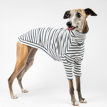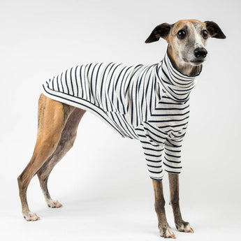 This ribbed sweater features half-length sleeves to keep your snoot warm without getting in the way of zoomies (or toilet time). Lightweight enough to layer, snug enough to wear solo.