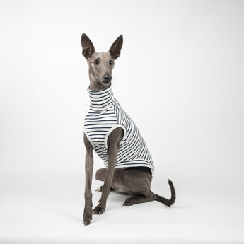This ribbed sleeveless sweater is lightweight, stretchy, and contoured to fit your Whippet's body - perfect for warmer days or layering on cool ones.