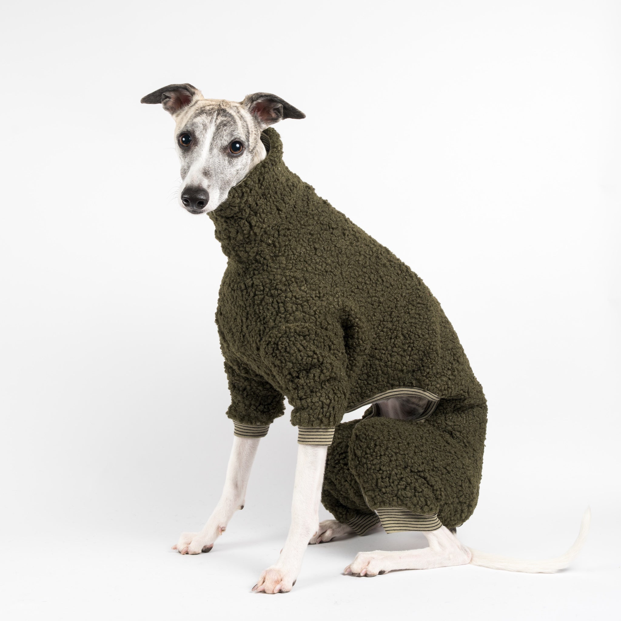 Our Fluffy Reversible Onesie is made just for Whippets - double-layered for warmth, fully reversible for style, and shaped to contour those noodle frames.